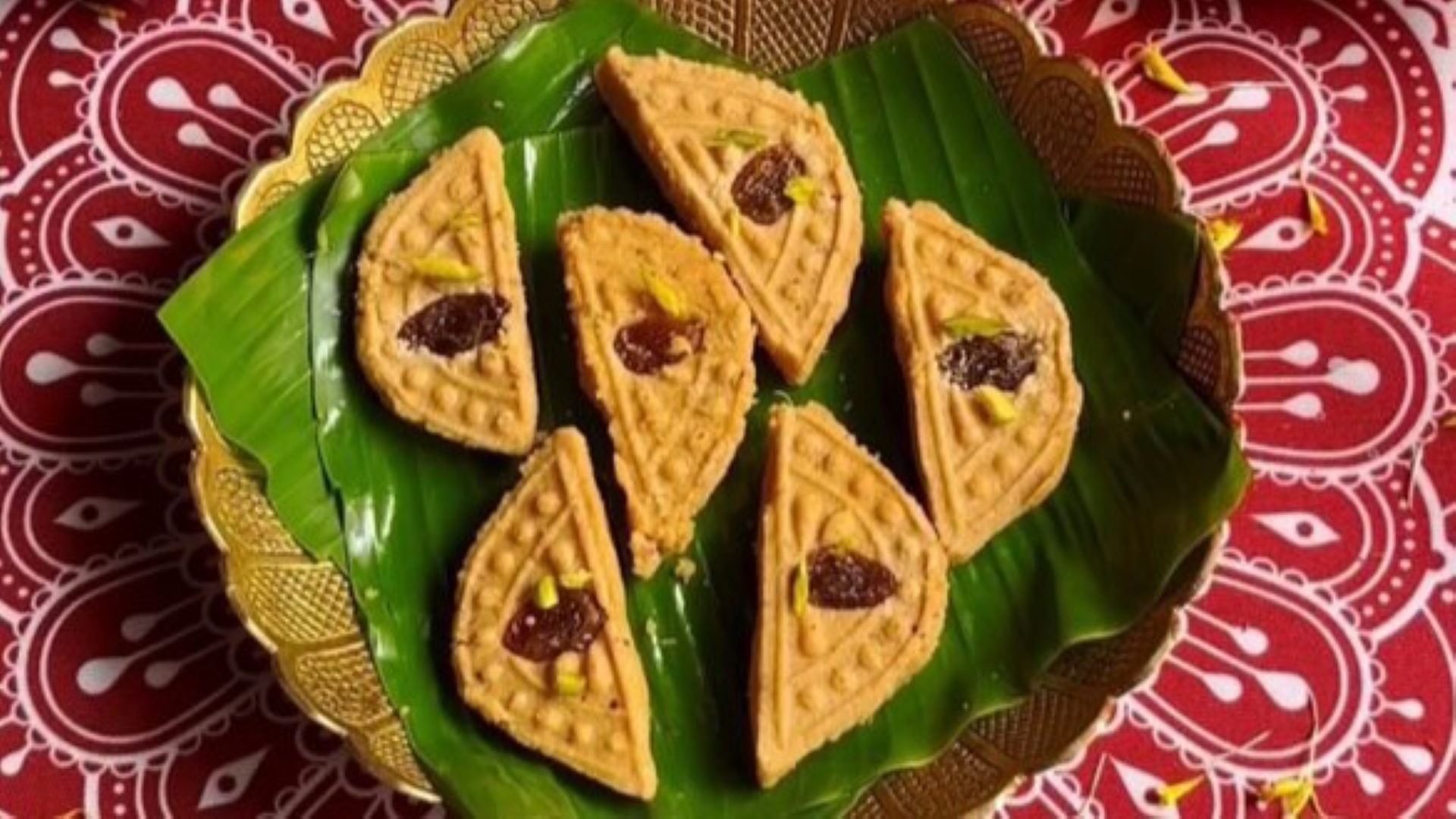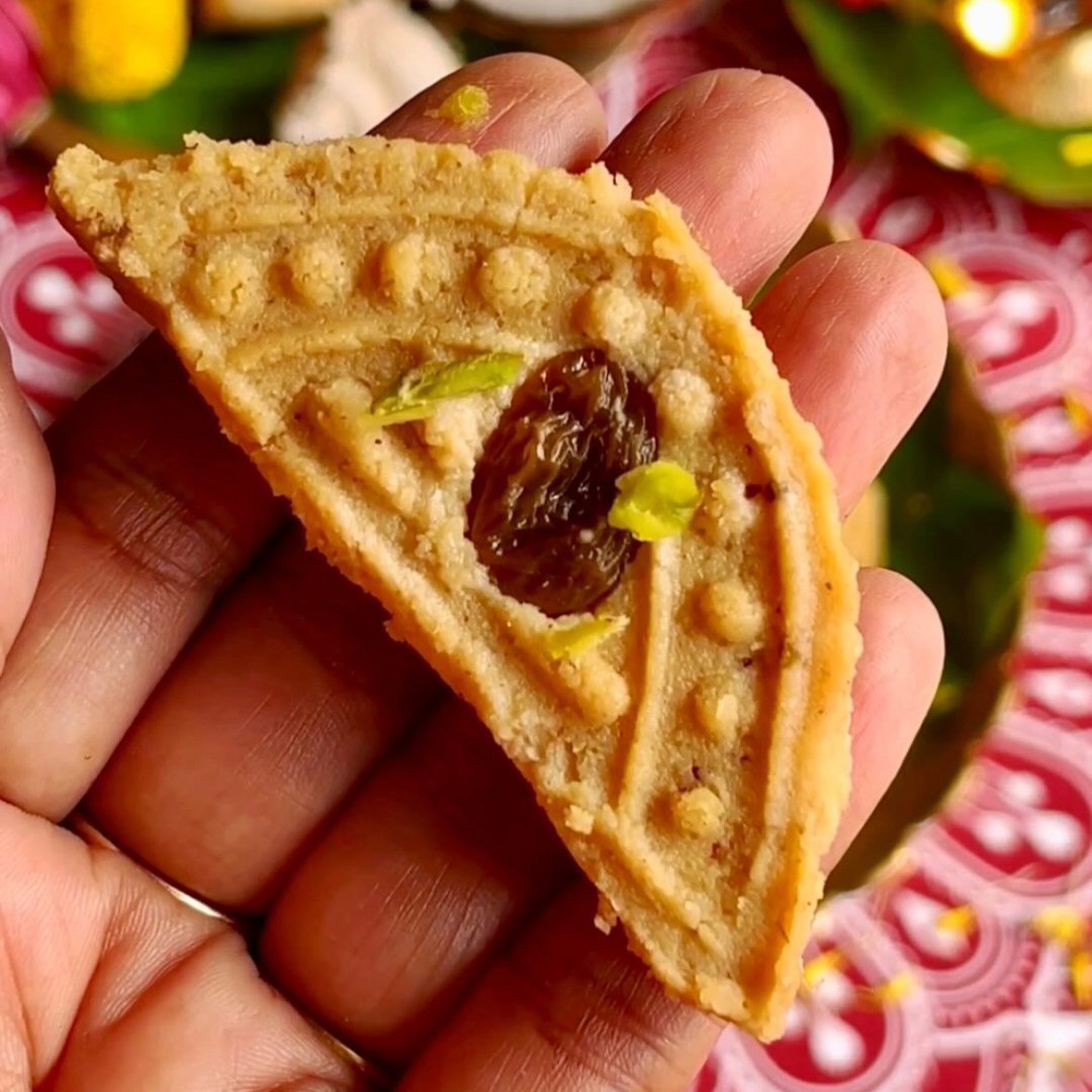 The name ‘Chandra‘ means moon, and ‘puli‘ refers to a traditional pithe, a type of Bengali sweet—hence the half-moon shape of this dessert. This version, known as ‘Gurer Chandrapuli,’ uses jaggery and is delicately flavoured with edible camphor and cardamom.