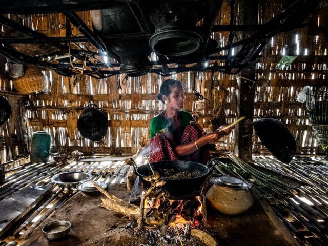 Visitors bridging generations, professions, and continents, sat on the small bamboo ottomans placed around the meram to keep warm and savour the immersive experience of a Mishing kitchen.