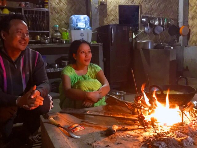 In charge of the kitchen was Nayanmani Risang, ‘my queen’ as Monjit fondly introduced her. She didn’t talk much, wore a heart-warming smile and was busy preparing dinner for the many guests who were slowly walking in.