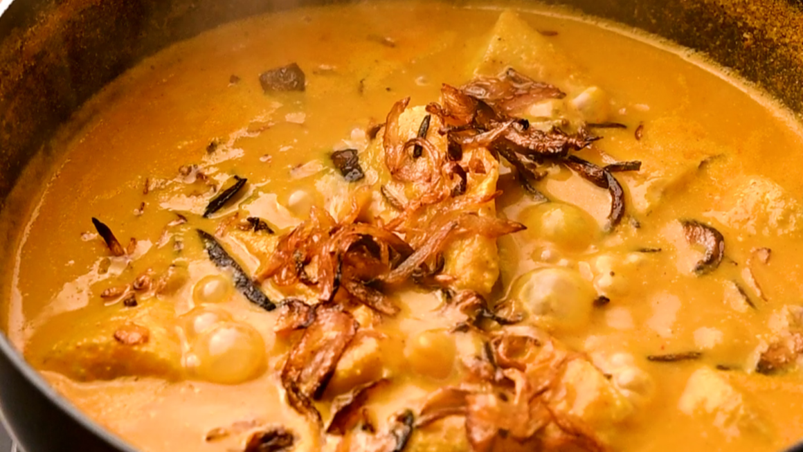 - Once the fish is cooked, turn off the heat and add the fried onion to the curry. Cover the pot with a lid to allow the infused aromas to settle.