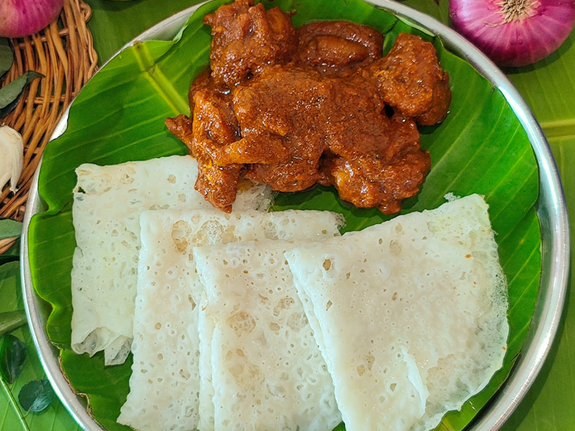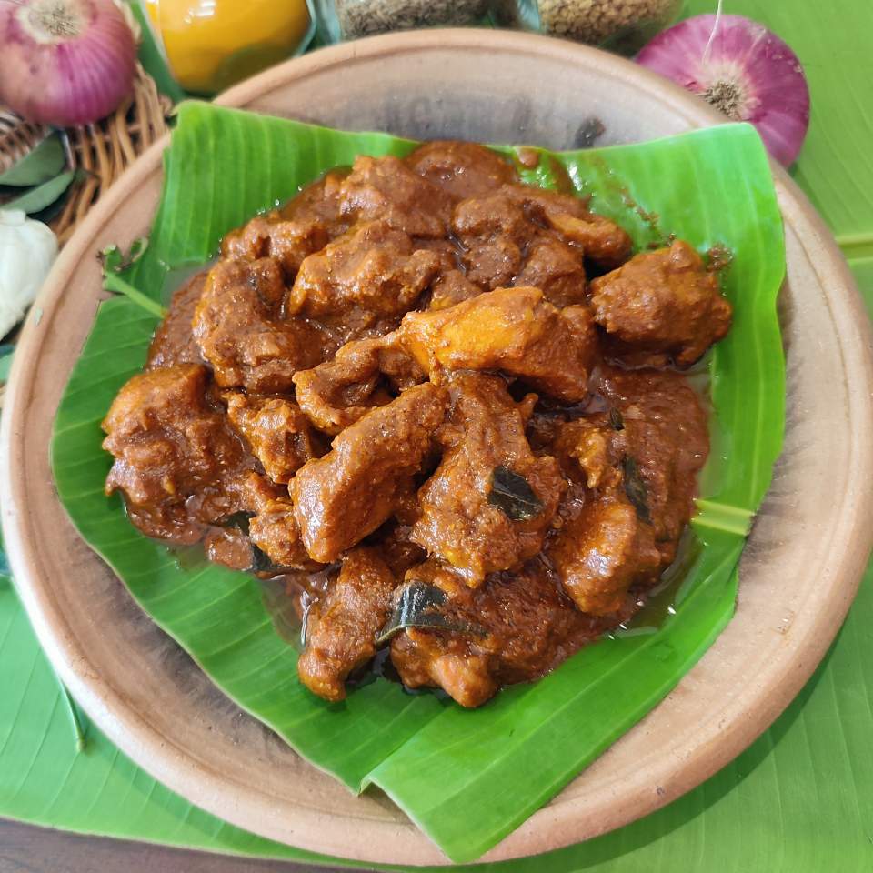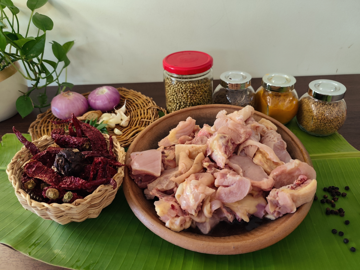 Chicken Pulimunchi carries that memory for me. As children, we would watch Mom cook it in a clay pot over firewood, the air slowly filling with the sharp aroma of tamarind, roasted spices, and Byadgi chilli. She would serve it with soft neer dosa or rice rotti, and those Sunday meals became some of our most enduring memories: cousins seated around the table, rice soaked in that deep red curry, elders telling stories, and the unmistakable warmth of home in every bite.