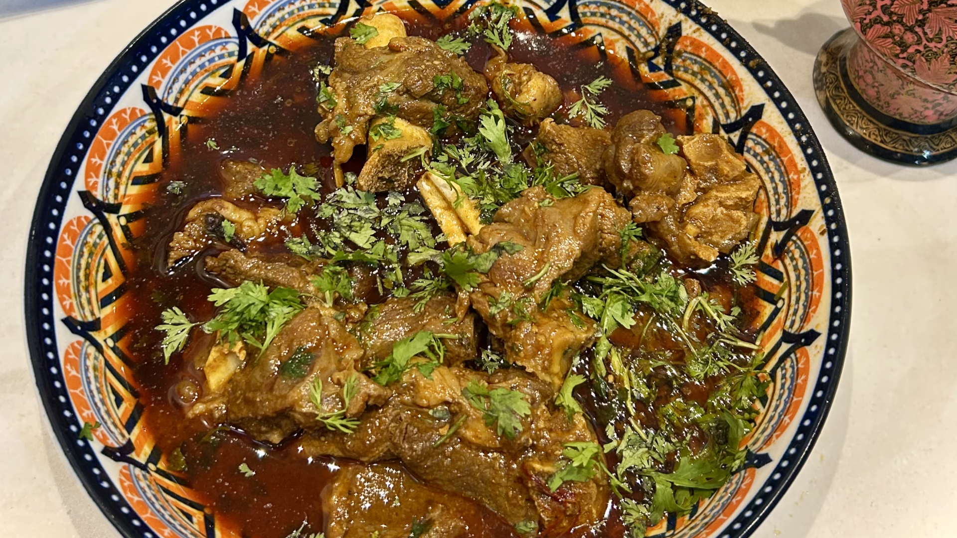 Mutton Rogan Josh is a signature dish from the Kashmir valley, known for its deep red hue, tender meat, and aromatic flavors. Originally brought to India by the Mughals, this dish has become a staple of Kashmiri cuisine. Its name, derived from Persian, translates to “clarified butter or oil” (Rogan) and “stewed in intense heat or fiery cooking” (Josh), perfectly encapsulating its rich, vibrant, and bold essence. Often served during traditional feasts or Waazwan, this dish celebrates the rich culinary heritage of Kashmir.