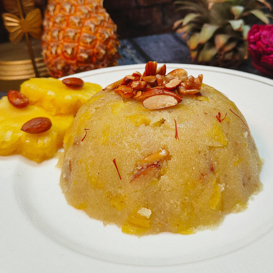 A treasured family recipe, Pineapple Kesari Sheera evokes vivid memories, transporting me back in time, from my grandmother’s kitchen to my mother’s and now, mine. This rich blend of ghee, nuts, pineapple, and saffron is a delightful companion to a cup of tea.