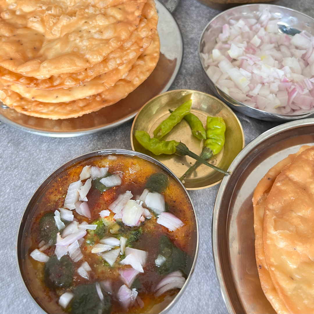 A cherished Sindhi breakfast recipe, this traditional dish is loved by all. Dal Pakwan is a delectable combination of crispy fried Pakwan served with flavourful tempered dals and is best enjoyed with an array of accompaniments like green chutney, tamarind chutney, sliced onions, lemon wedges, and fried green chillies.